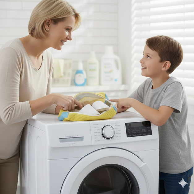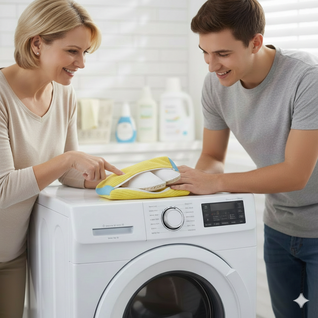 Reduces banging sounds in the washing machine and protects both your shoes and drum.